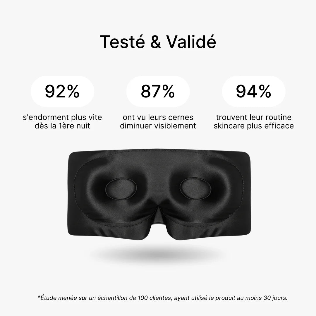 Contrairement aux masques traditionnels qui exercent une pression sur les yeux et laissent entrer la lumière sur les côtés, ce masque en soie combine :